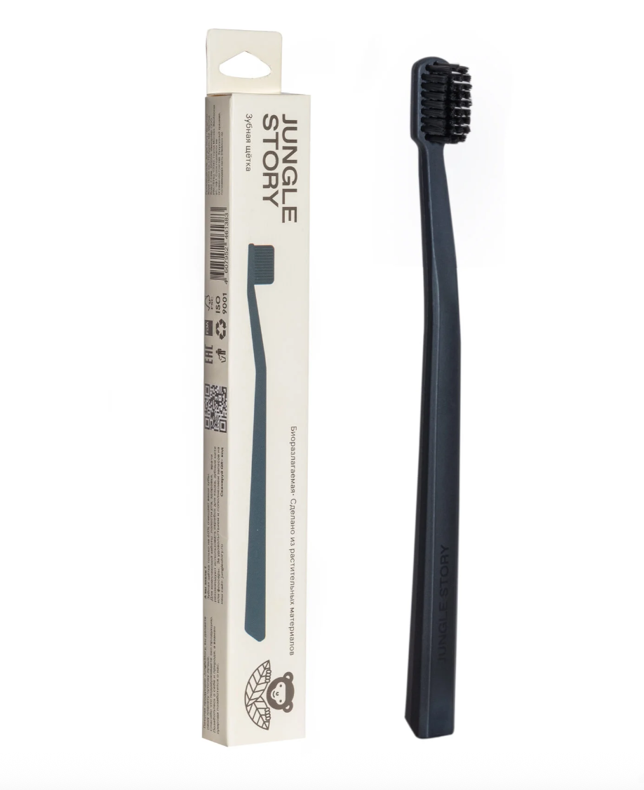 JUNGLE STORY Растительная зубная щетка - с щетиной средней мягкости, эффективно удаляет зубной налет и обеспечивает тщательную чистку зубов, а также не травмирует десны.