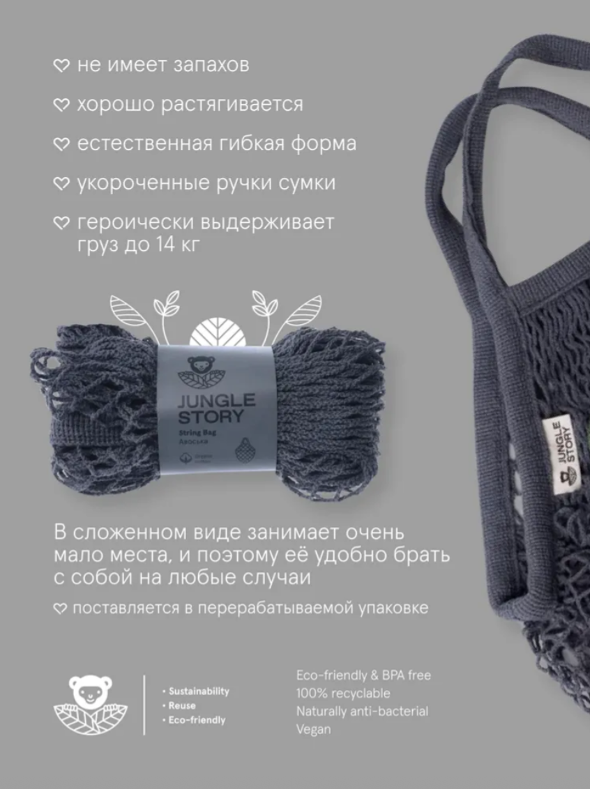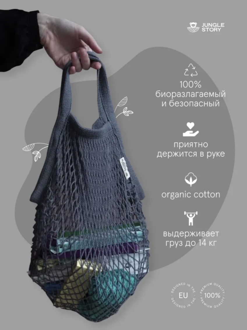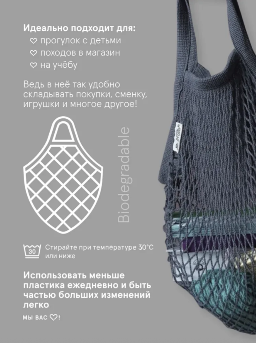 Плетеная сумка многоразового использования изготовлена из биоразлагаемого органического хлопка, что делает её износостойкой и чрезвычайно прочной!