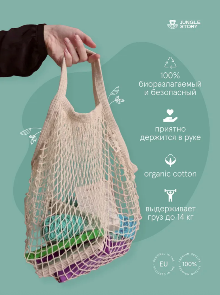 Плетеная сумка многоразового использования изготовлена из биоразлагаемого органического хлопка, что делает её износостойкой и чрезвычайно прочной!