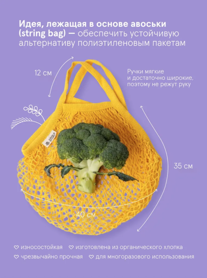 Идея, лежащая в основе авоськи обеспечить устойчивую альтернативу паре полиэтиленовых пакетов.