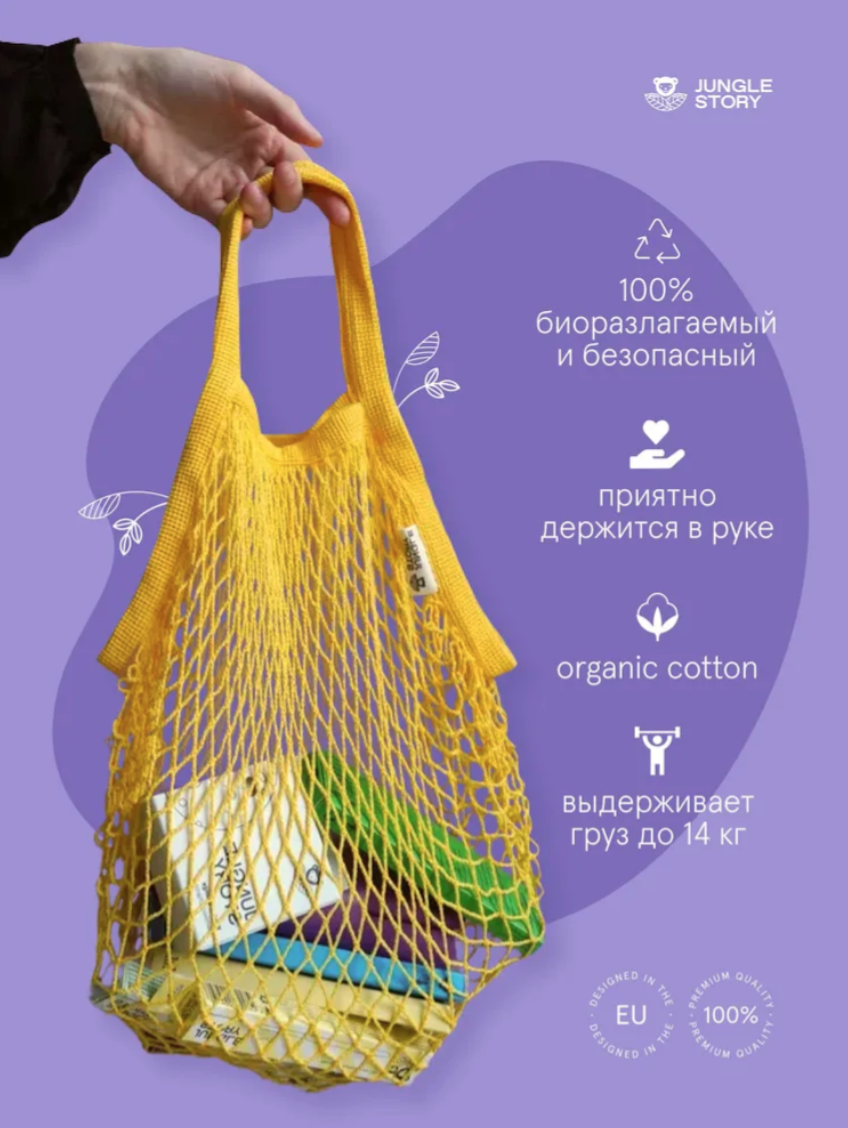 Плетеная сумка многоразового использования изготовлена из биоразлагаемого органического хлопка, что делает её износостойкой и чрезвычайно прочной!