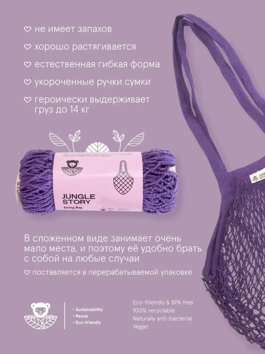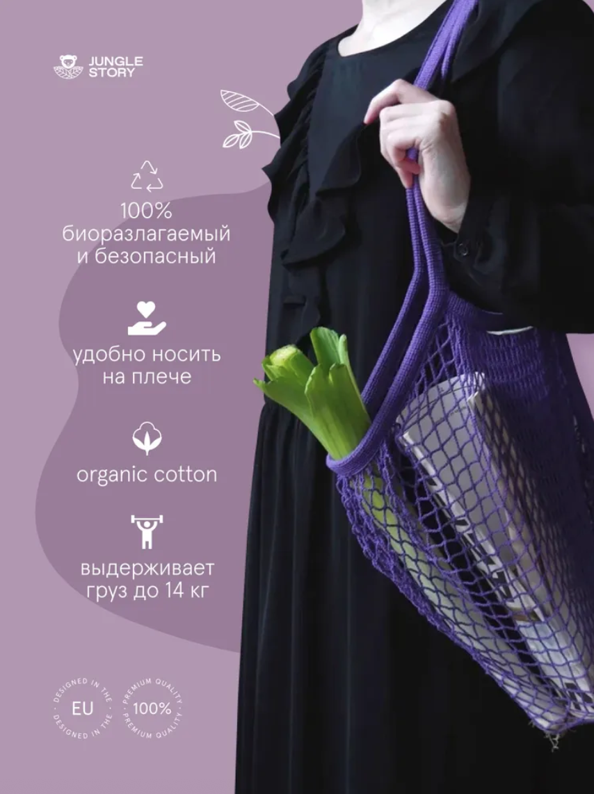 Плетеная сумка многоразового использования изготовлена из биоразлагаемого органического хлопка, что делает её износостойкой и чрезвычайно прочной!