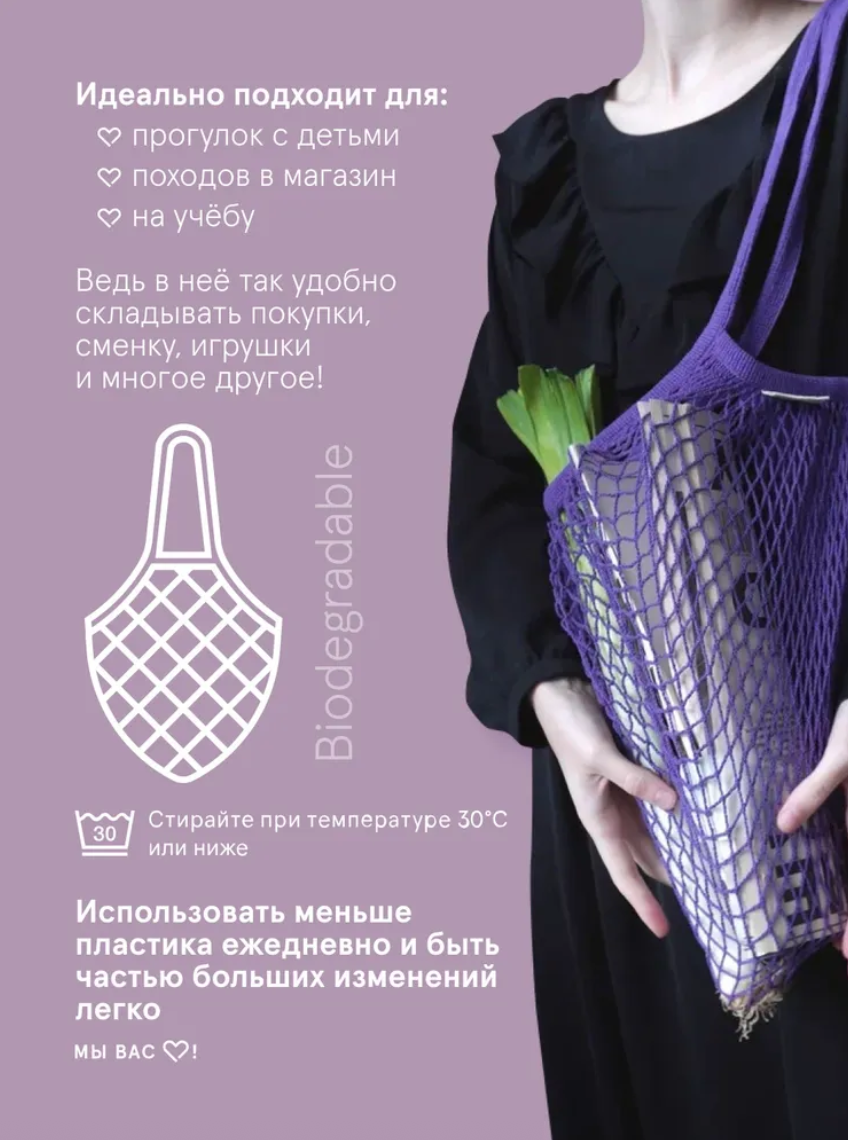 Ручки авоськи длинные, мягкие и достаточно широкие, которые не режут плечо!