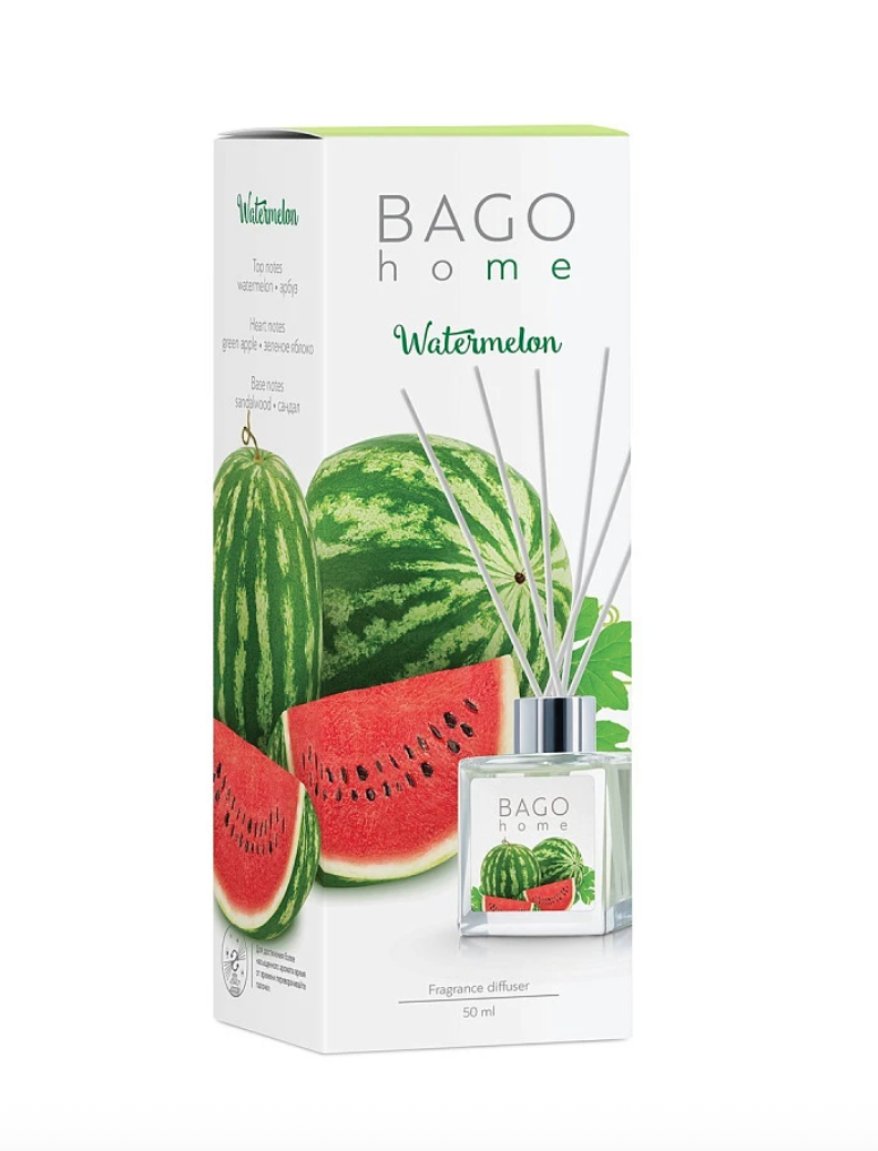 BAGO home Диффузор ароматический Арбуз - Освежающий взрыв арбузных, огуречных и грейпфрутовых нот открывает аромат зарядом бодрости.
