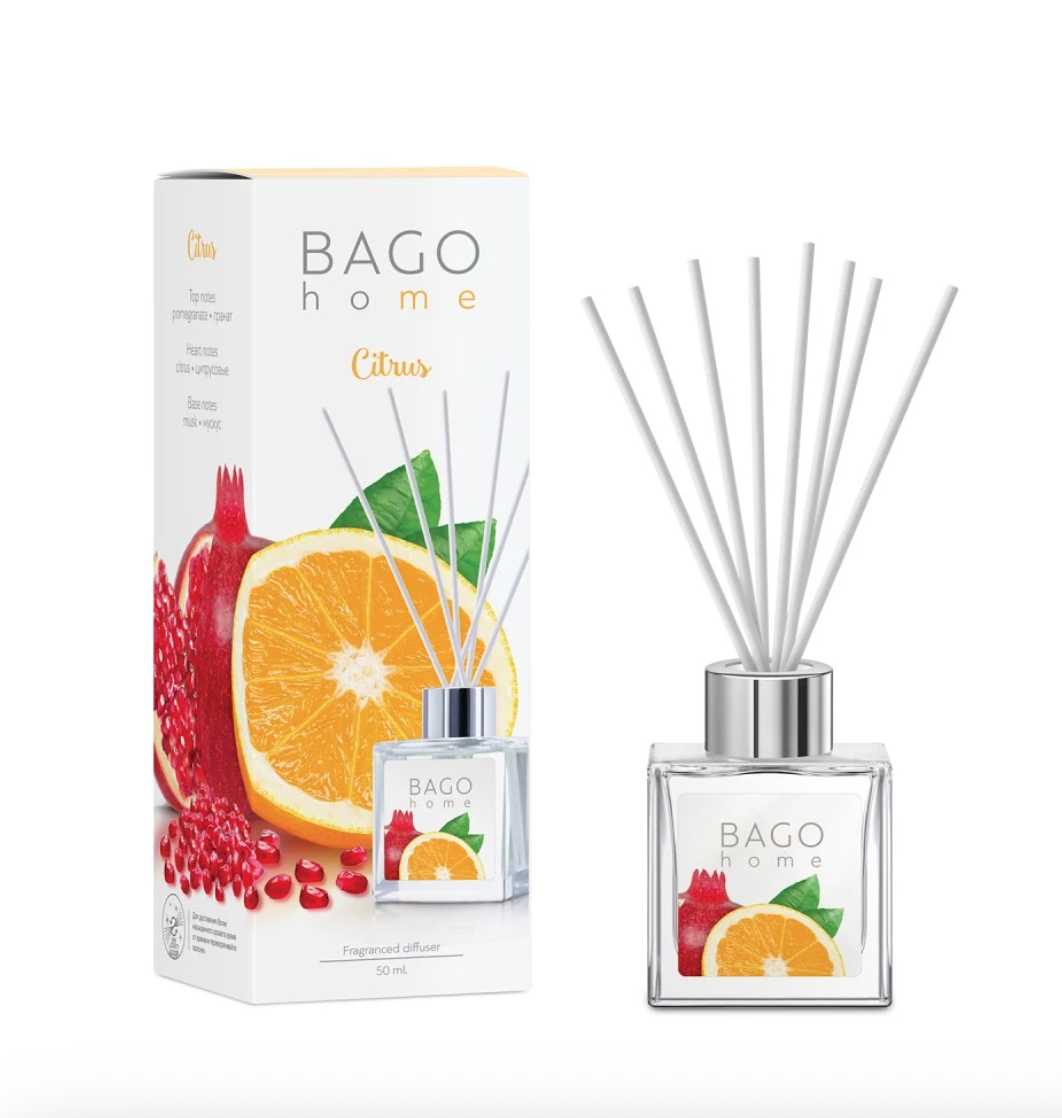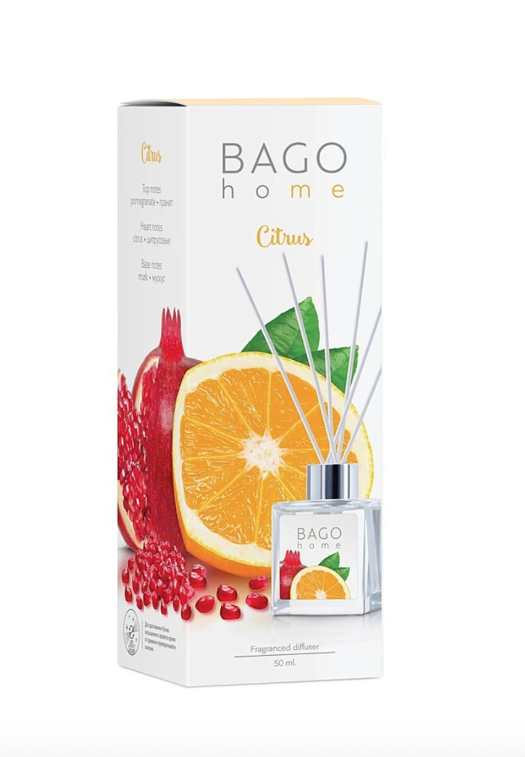 BAGO home Диффузор ароматический Цитрус - солнечный и сладкий апельсин с сочным гранатом окутал нежный и теплый шлейф мускуса.