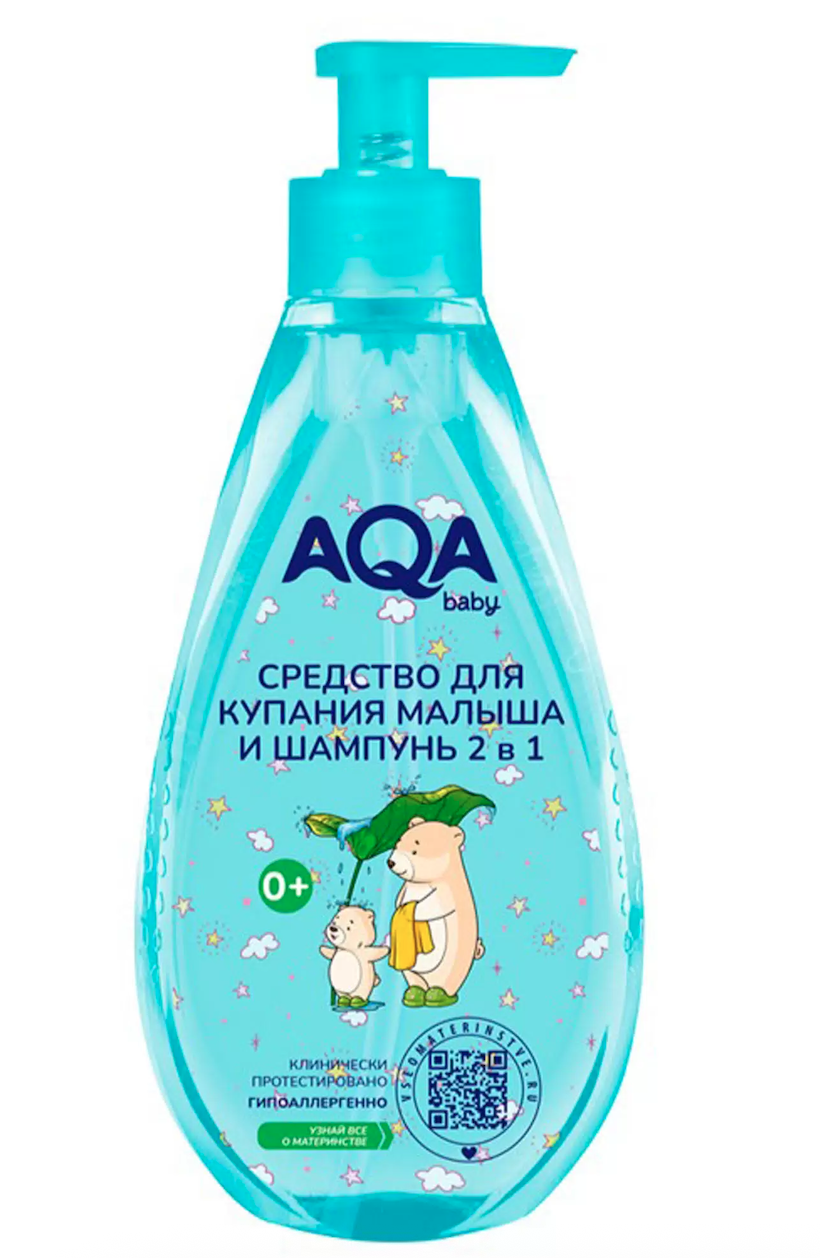 AQA baby Средство для купания малыша и шампунь 2 в 1 - мягко очищает самую нежную кожу и волосики Вашего малыша с первых дней жизни.