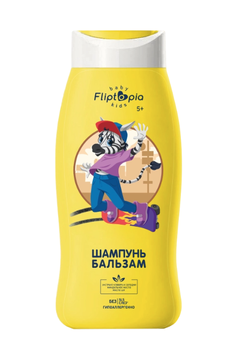 - Fliptopia Baby Детский шампунь-бальзам 2в1 Освежающий дюшес, 250 мл.