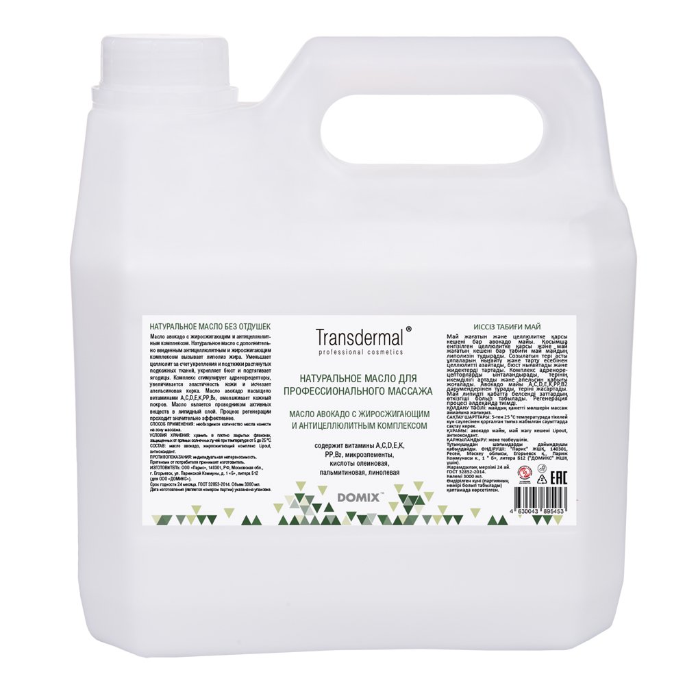 - ТРС Масло Авокадо для профессионального массажа с жиросжигающим и антицеллюлитным комплексом, без отдушек, 3 л.