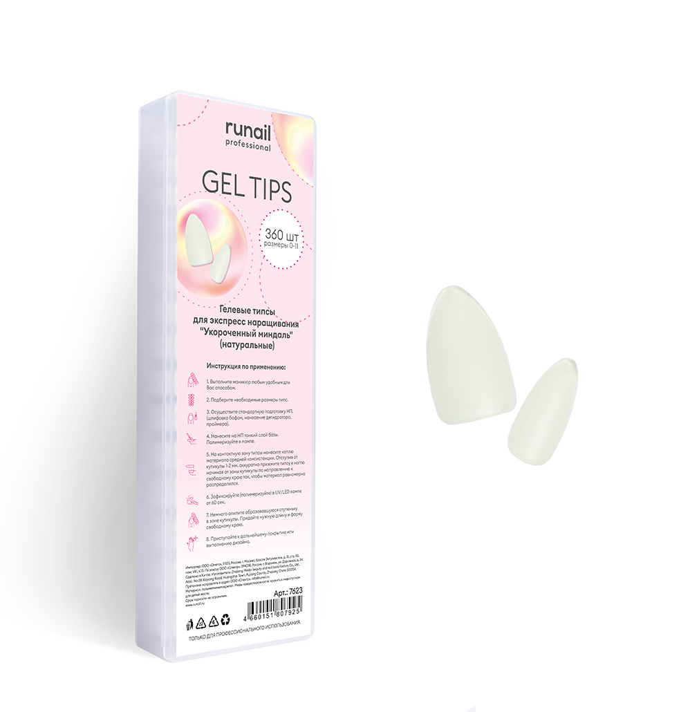 - 7623 RuNail Гелевые типсы Укороченный миндаль, 360 шт.