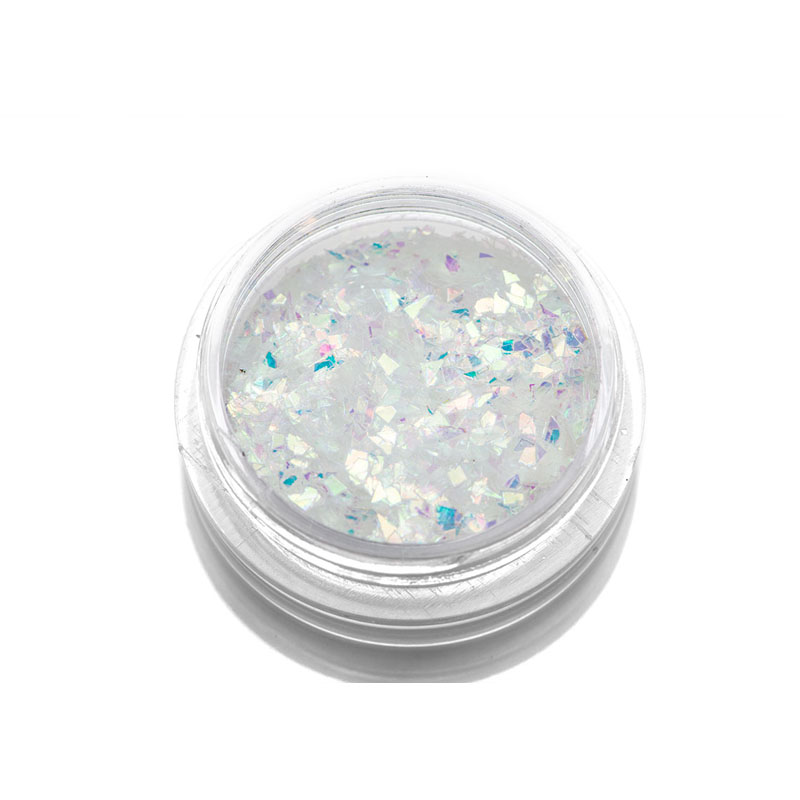 Представляет собой тонкие прозрачные пластинки или чешуйки напоминающие фольгу. Используется материал для декорирования ногтевой пластины. Слюда может стать как основным элементом в дизайне, так и ярким акцентом. Пластинки наносятся на липкий слой цвета, либо на закрепитель.