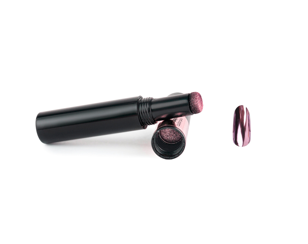 Теперь делать дизайны с зеркальным покрытием легко - пыль для втирки находится внутри съемного колпачка, что исключает ее рассыпание и экономит расход.