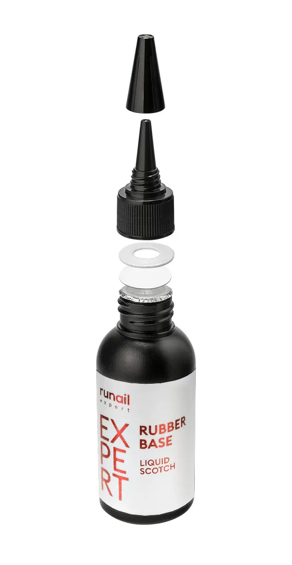 База Rubber Base Liquid Scotch Runail Expert отличается безопасной даже для ослабленных ногтей среднекислотной формулой - ph 3.5-4.