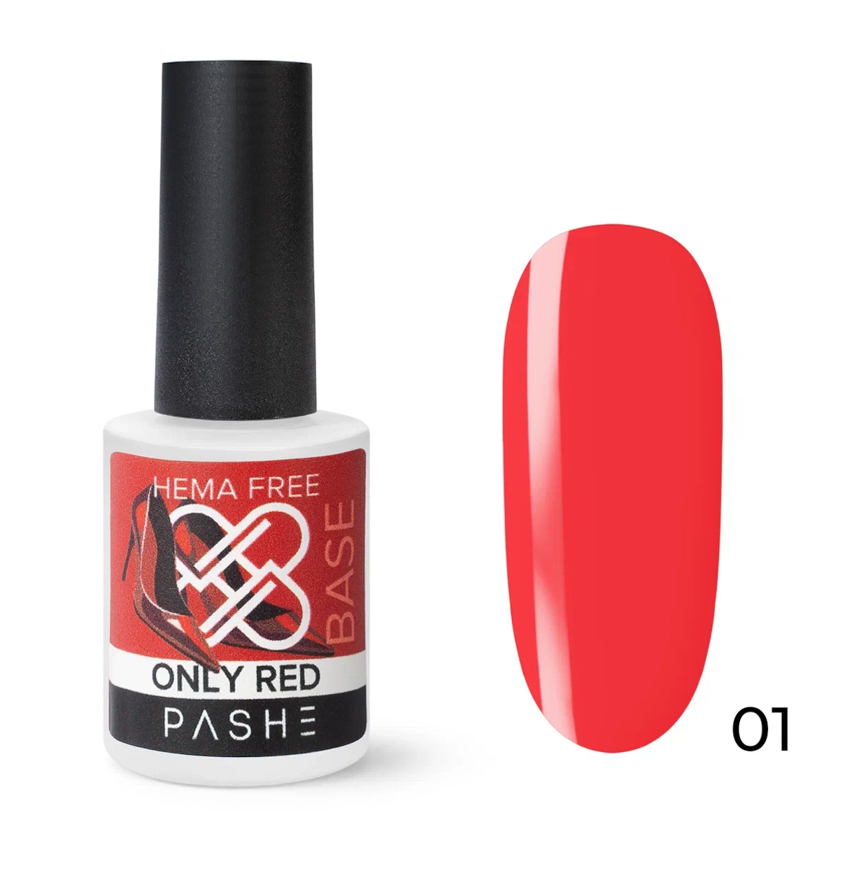 PASHE База цветная Only Red каучуковая жесткая №01, 9 мл.