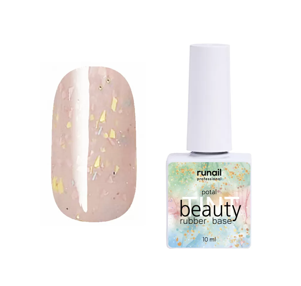 RuNail Каучуковая цветная база Beauty TINT Potal - Цветное базовое покрытие светлого, пастельного оттенка с сияющими хлопьями разноцветной потали.