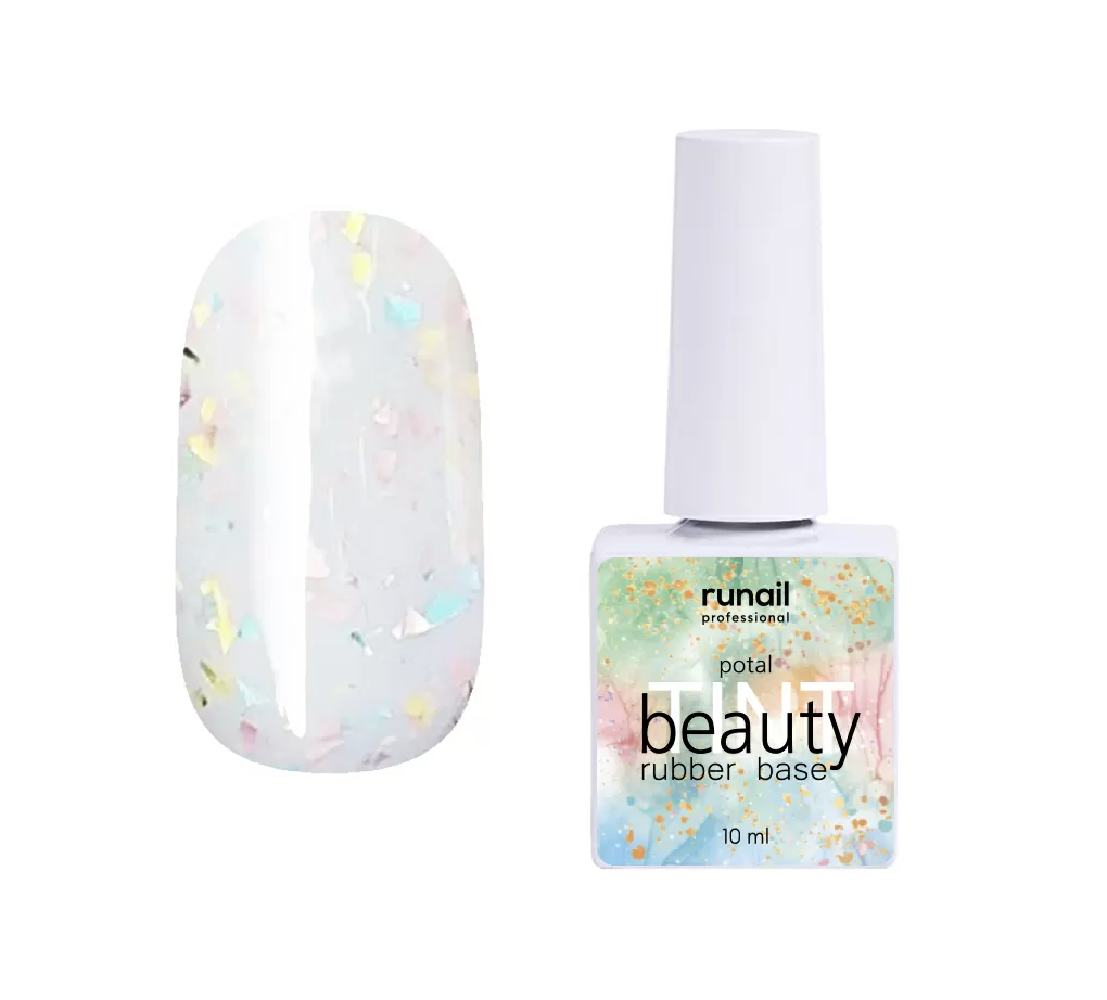 RuNail Каучуковая цветная база Beauty TINT Potal - Цветное базовое покрытие светлого, пастельного оттенка с сияющими хлопьями разноцветной потали.