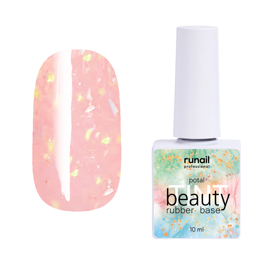 RuNail Каучуковая цветная база Beauty TINT Potal - Цветное базовое покрытие светлого, пастельного оттенка с сияющими хлопьями разноцветной потали.