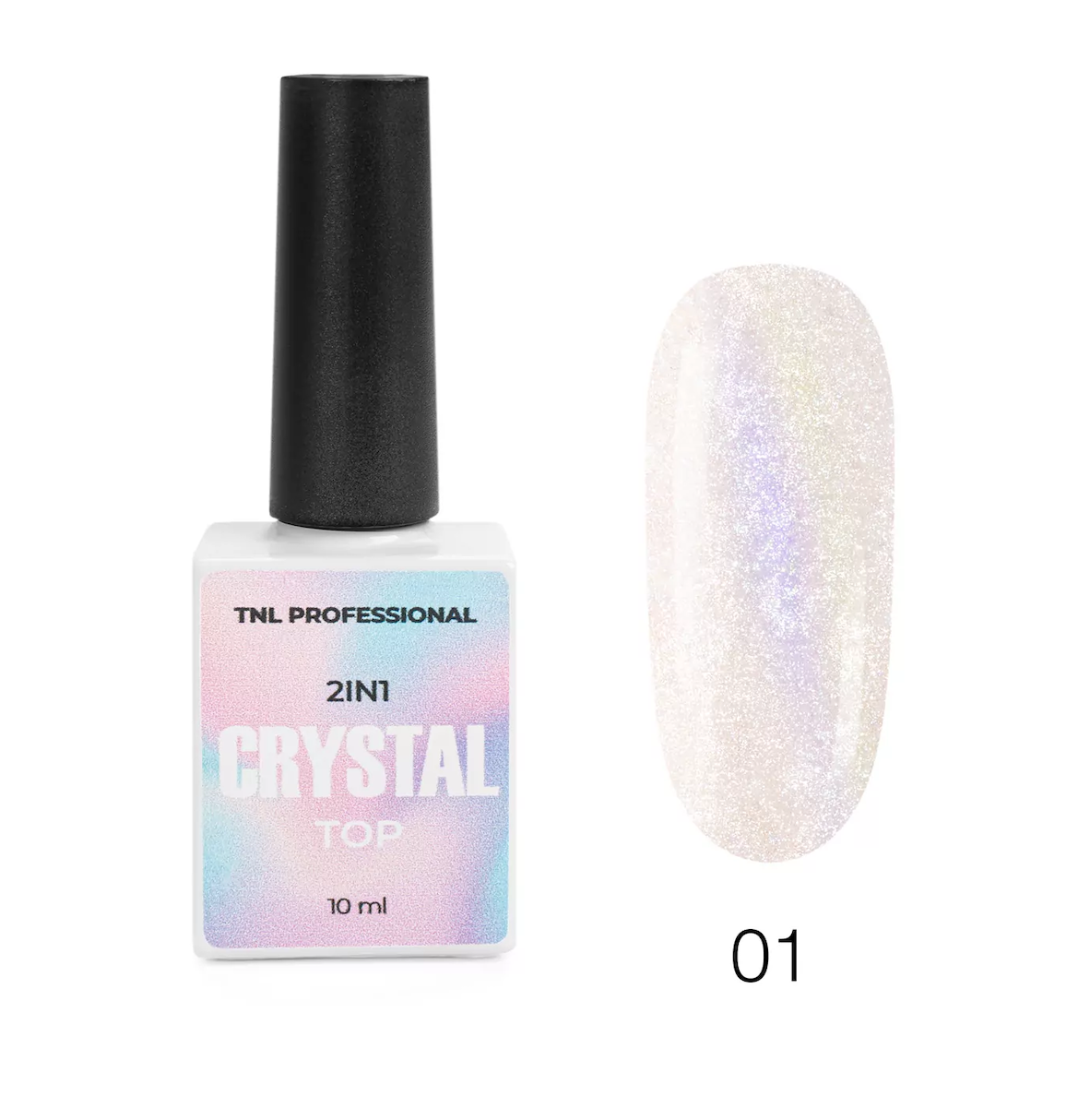 - TNL Закрепитель для гель-лака Crystal Top 2в1 №01 с эффектом втирки, 10 мл.