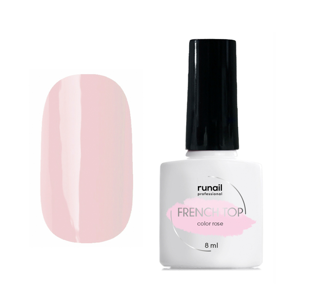 Runail Топ для гель-лака French Top - Глянцевый цветной топ обладает средней консистенцией, легко наносится, отлично самовыравнивается, не затекает на боковые валики.