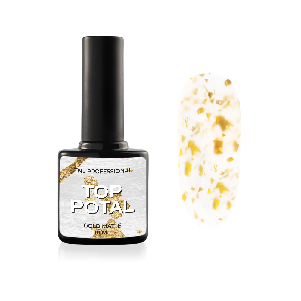 TNL Закрепитель для гель-лака матовый Potal Золото - имеет среднюю консистенцию и частички мелкой фольги, которая придает ногтям блеск драгоценного металла.
