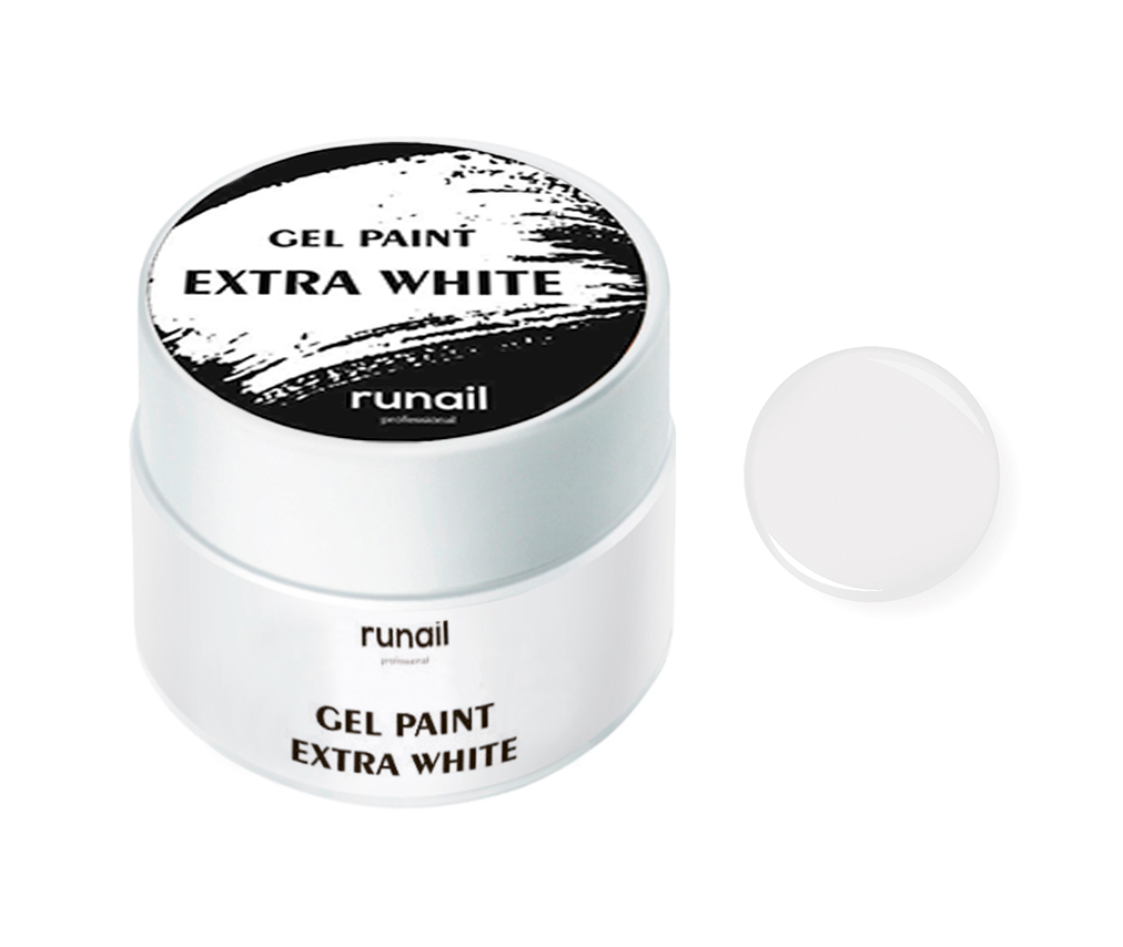 RuNail Гель-краска EXTRA WHITE без липкого слоя – это высокопигментированная белая гель-краска без липкого слоя.