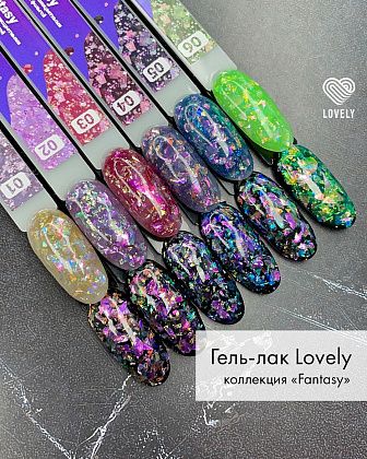 Lovely Гель-лак Fantasy - с голографическими частицами разноцветной фольги с эффектом "битого стекла".