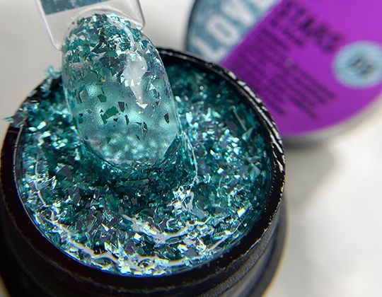 Обладает роскошным сиянием и переливом. Тонкие частицы разноцветной фольги образуют ровную поверхность. Можно использовать для дизайна, создания градиента. Эффектно смотрится при нанесении на цветную подложку. Для получения плотного цвета следует нанести два слоя гель-лака.