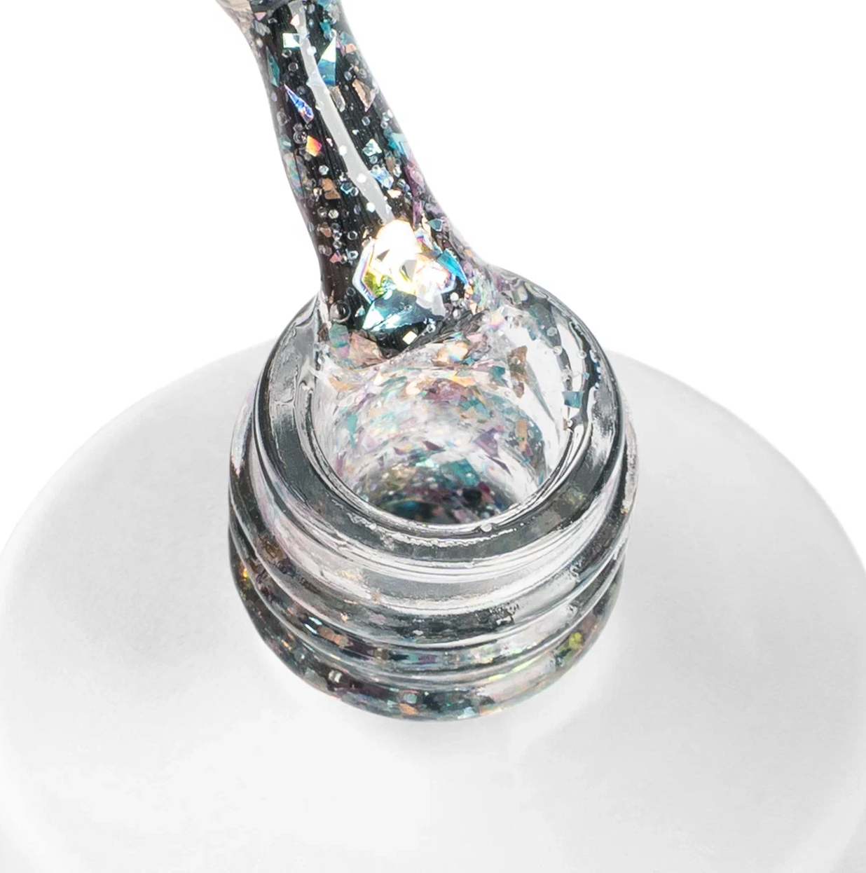 С голографическим глиттером. Благодаря своей высокой пигментированности отличается очень экономичным расходом, образуя глубокий и насыщенный цвет уже при нанесении в один слой. Формула гель-лака не содержит вредных ингредиентов, поэтому он не оказывает негативного влияния на здоровье ногтей.