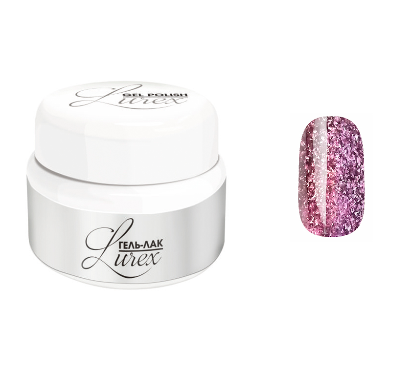RuNail Гель-лак Lurex - обладает ярким металлизированным блеском за счет огромного количества мелких глиттерных блесток.