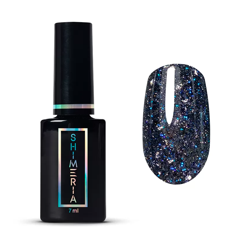 Сапфировое сияние шиммера раскрывается с каждым движением кисти по-новому. Элементы декора равномерно распределяются по ногтевой пластине и не топорщатся.
