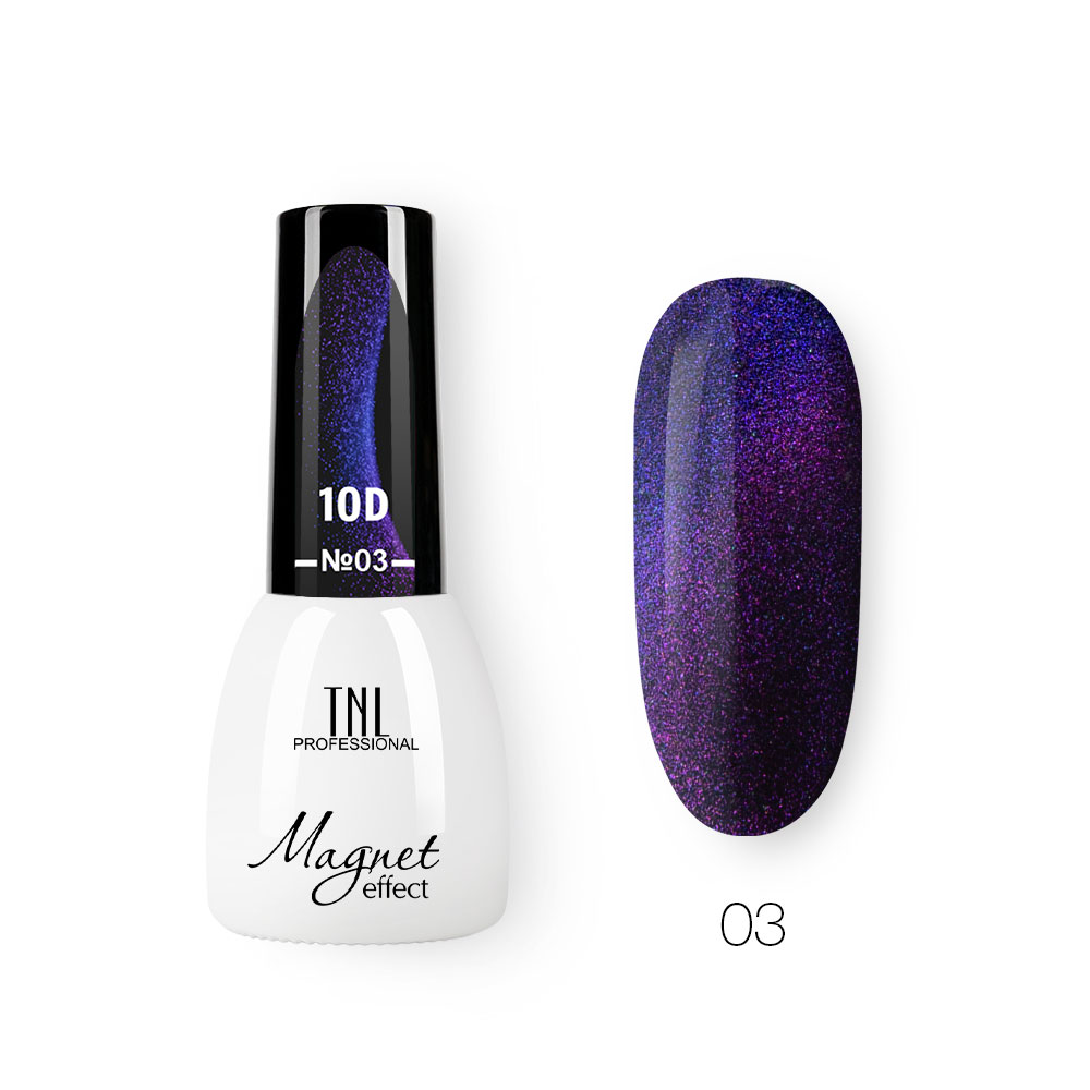 Гель-лак TNL кошачий глаз 10D - плотное покрытие с глубоким, широким магнитным бликом и притягательным мерцанием светоотражающих частиц.