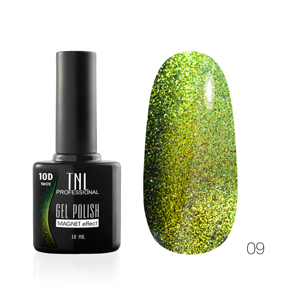 - TNL Гель-лак Кошачий глаз 10D №09 золотой малахит, 10 мл.