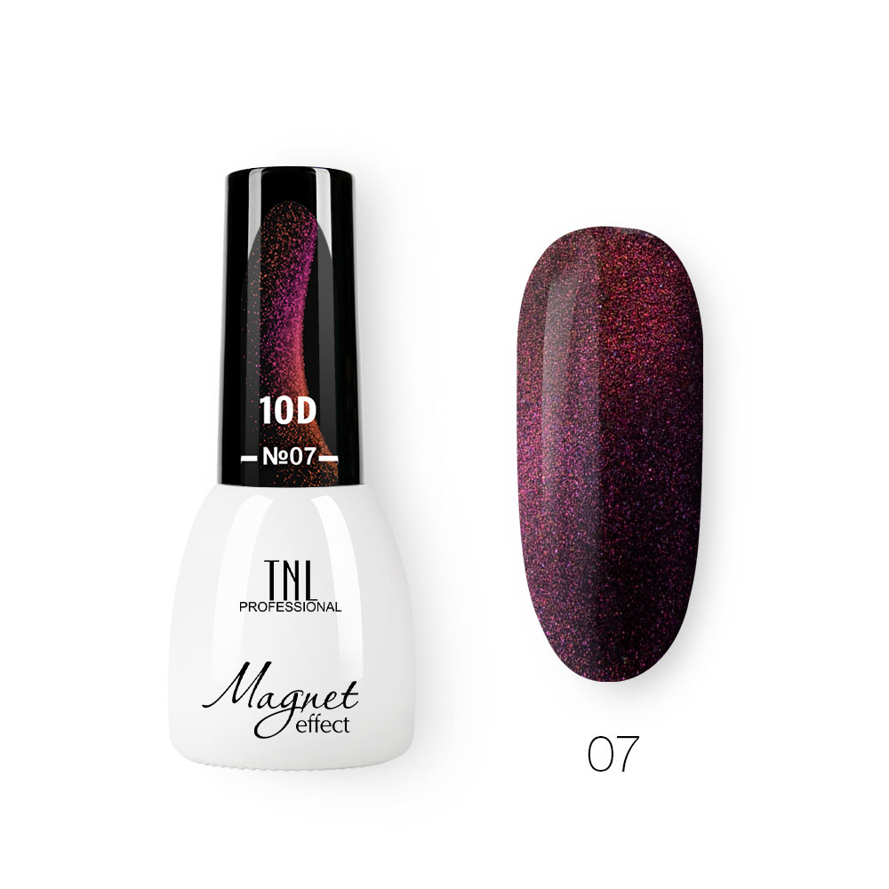 Гель-лак TNL кошачий глаз 10D - плотное покрытие с глубоким, широким магнитным бликом и притягательным мерцанием светоотражающих частиц.