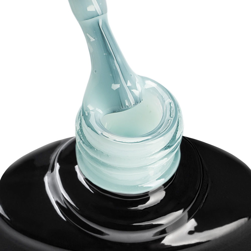 Белые переливающиеся вкрапления в сочетании с оттенками палитры от спокойных до насыщенно ярких придают маникюру особый шарм. Гель средней консистенции, с хорошей укрывистостью может использоваться как самостоятельный маникюр и как фон для дополнительного дизайна.