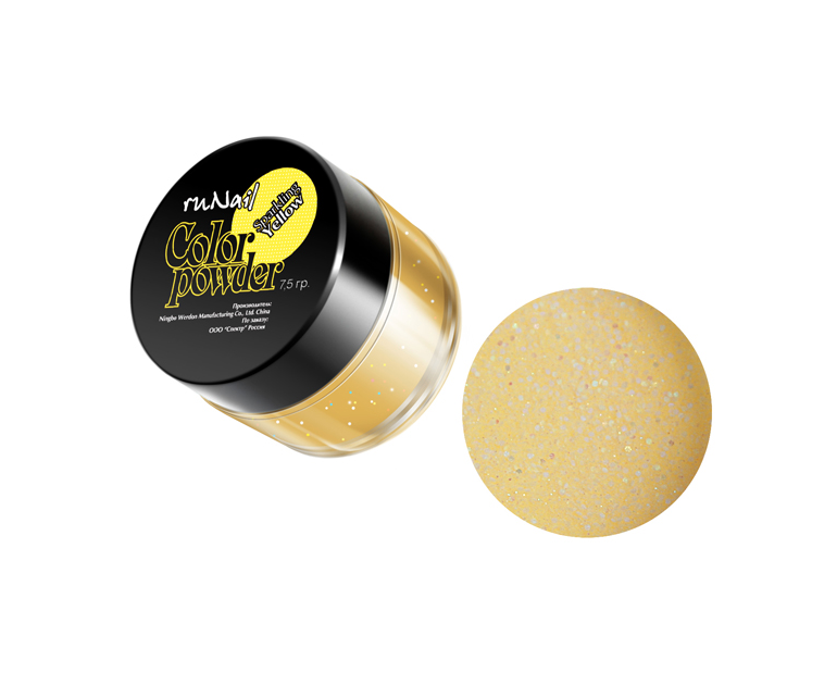 - 0045 RuNail Акриловая пудра с блёстками Жёлтая, 7,5 гр.