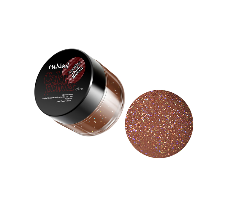 - 0054 RuNail Акриловая пудра с блёстками Тёмно-коричневая, 7,5 гр.