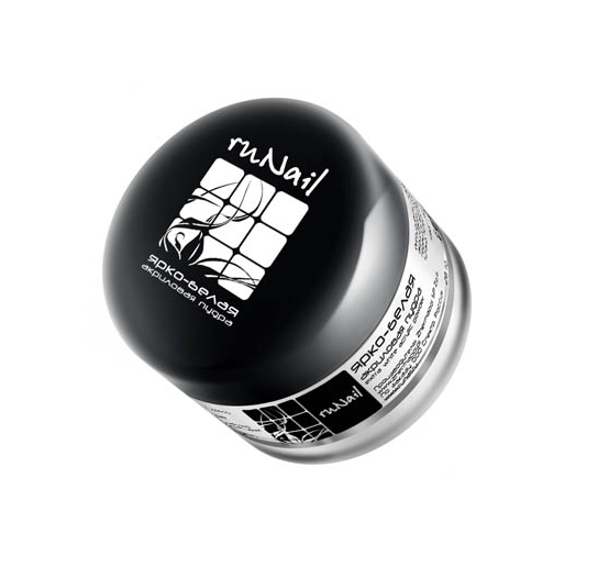 RuNail Ярко-белая акриловая пудра - применяется для создания дизайнов и формирования свободного края при моделировании френч-маникюра.