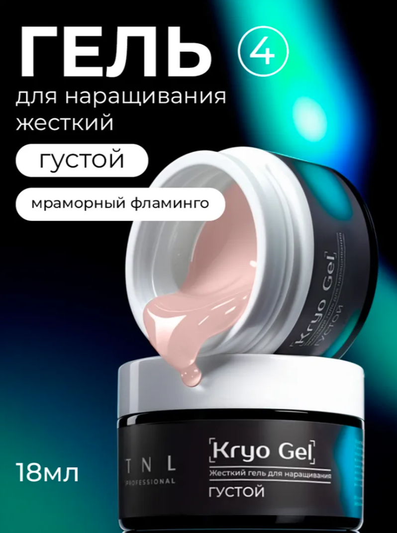 - TNL Гель для наращивания Kryo Gel №04 жёсткий, густой, Мраморный фламинго, 18 мл.