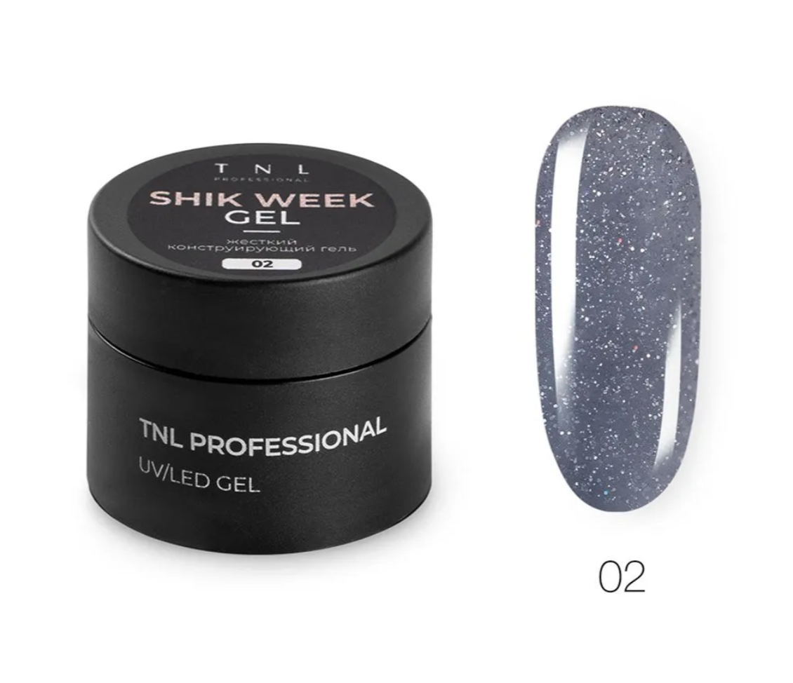 - TNL Гель для наращивания Shik Week светоотражающий, Базальтовый серый №02, 15 мл.
