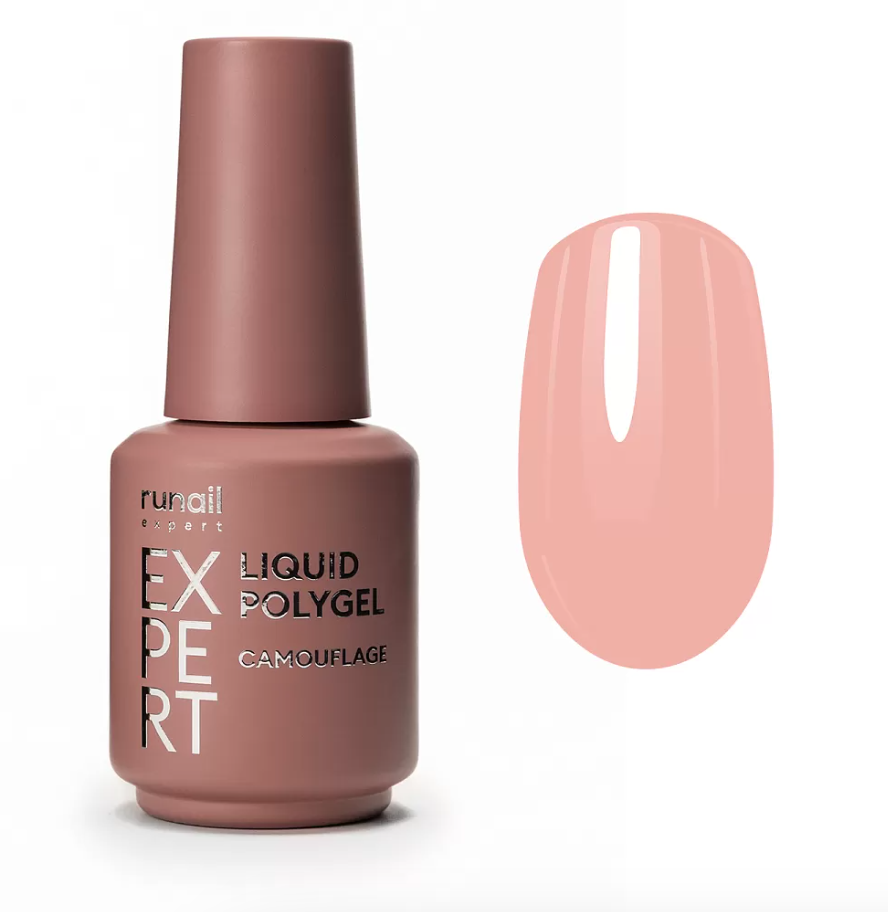 RuNail Жидкий полигель - Мультифункциональный моделирующий материал со свойствами геля и консистенцией каучуковой базы.