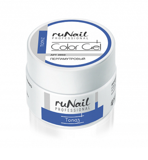 - 0950 RuNail Цветной УФ-Гель Голубой топаз с перламутром, 7,5 гр.