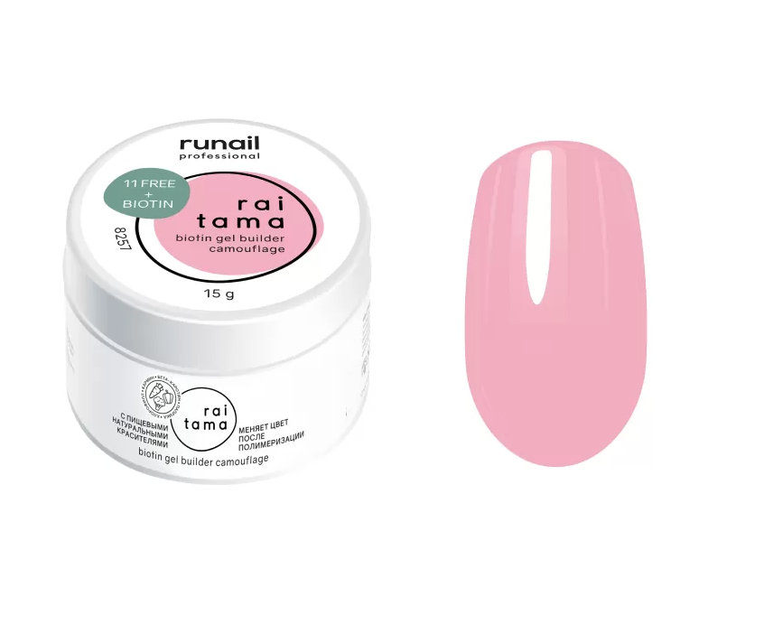 Runail Гипоаллергенный Гель Raitama с биотином - Камуфлирующий гель средне-густой консистенции с высокой степенью вязкости.