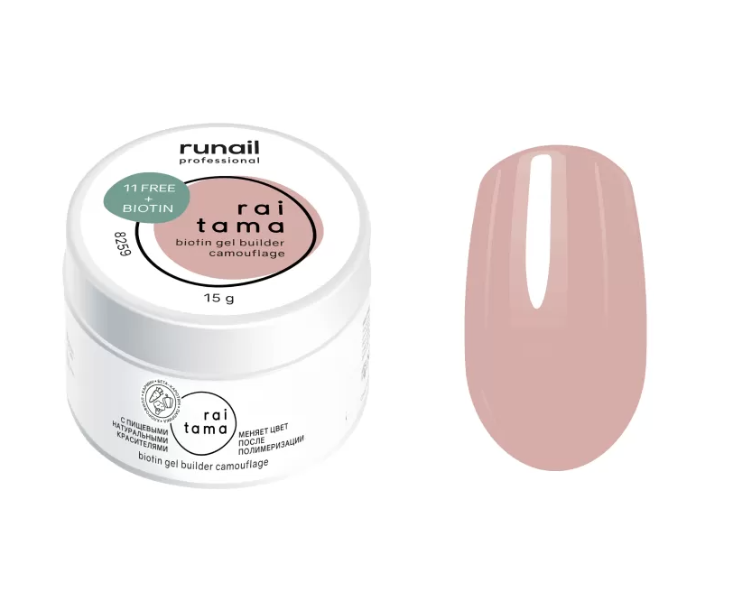 Runail Гипоаллергенный Гель Raitama с биотином - Камуфлирующий гель средне-густой консистенции с высокой степенью вязкости.