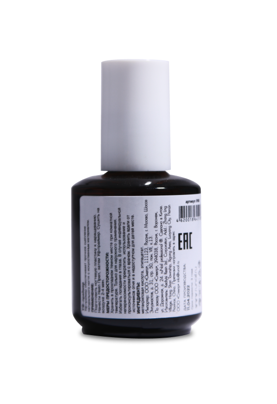 Способ применения: Хорошо отжатой кистью нанести небольшое количество праймера на подготовленную и обезжиренную ногтевую пластину, избегая попадания препарата на кутикулу и боковые валики. Сушить на воздухе 1-2 минуты.