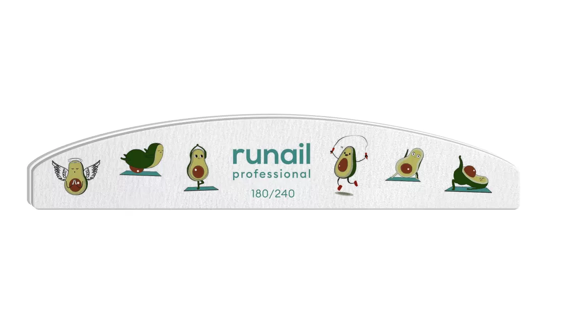 RuNail Полукруглая профессиональная пилка для ногтей белого цвета с оригинальным принтом «Авокадо» и абразивностью 180/240 грит - незаменимый инструмент при работе с искусственными и натуральными ногтями - подходит для опила и коррекции свободного края.