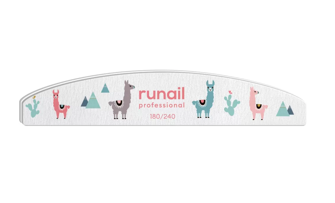 RuNail Полукруглая профессиональная пилка для ногтей белого цвета с оригинальным принтом «Ламы» и абразивностью 180/240 грит - незаменимый инструмент при работе с искусственными и натуральными ногтями - подходит для опила и коррекции свободного края.