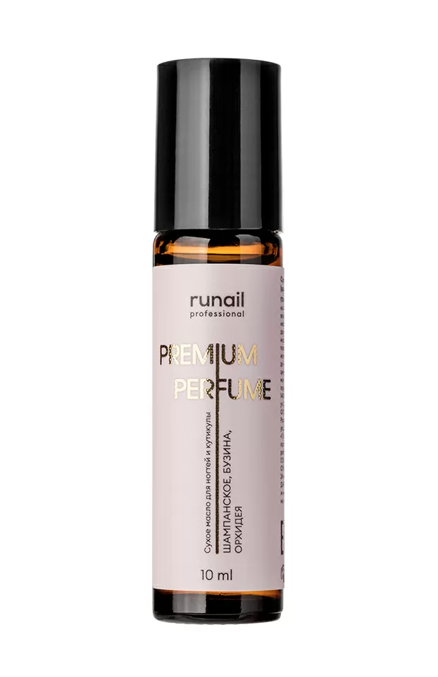 RuNail Сухое масло для ногтей и кутикулы PREMIUM PERFUME (аромат: шампанское, бузина, орхидея) - это современное профессиональное средство для ухода за кутикулой, сочетающее глубокое питание и утончённый парфюмерный аккорд.