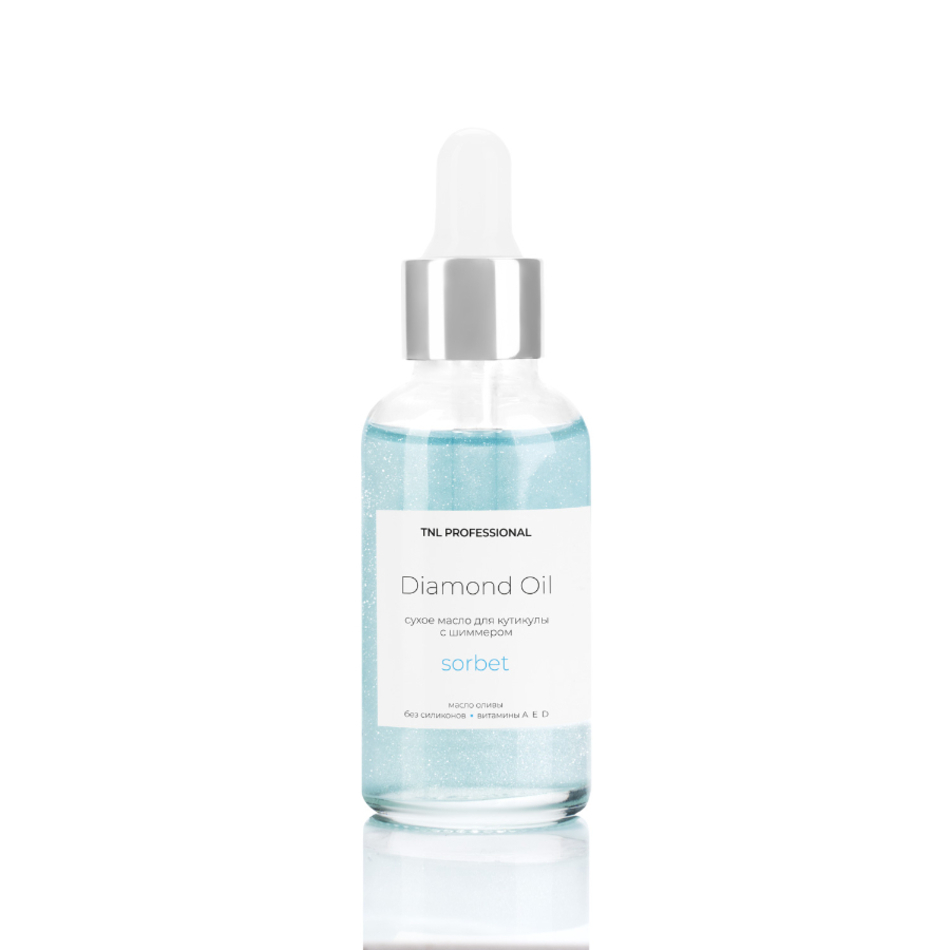 TNL Diamond Сухое масло с шиммером - содержит натуральное оливковое масло, витамины А, Е и D, глубоко увлажняет и питает кутикулу.