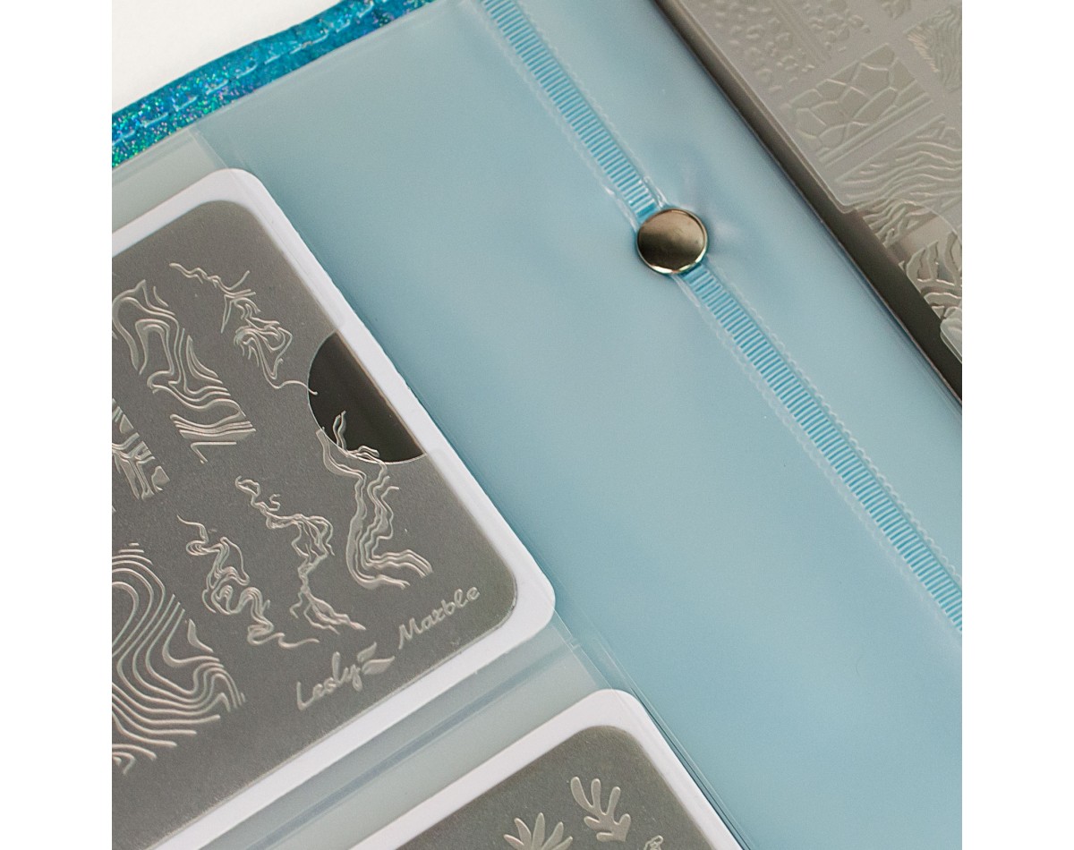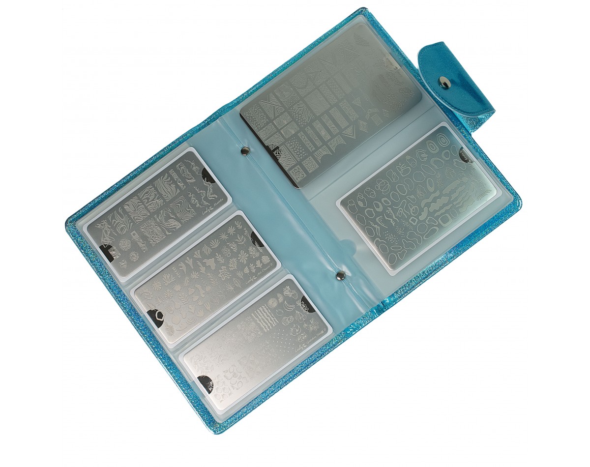 Организует рабочее пространство стемпингомана и упорядочит коллекцию. Используется для демонстрации клиенту имеющихся в ассортименте пластин, кейс для хранения заполняется ластинами по различным тематическим направлениям: пластины с цветами, пластины граффити, пластины с животным принтом и другие. Можно собрать пластины по сезонным тематикам: летние пластины для стемпинга, осенние пластины для стемпинга, зимние пластины для стемпинга и весенние плитки для стемпинга.