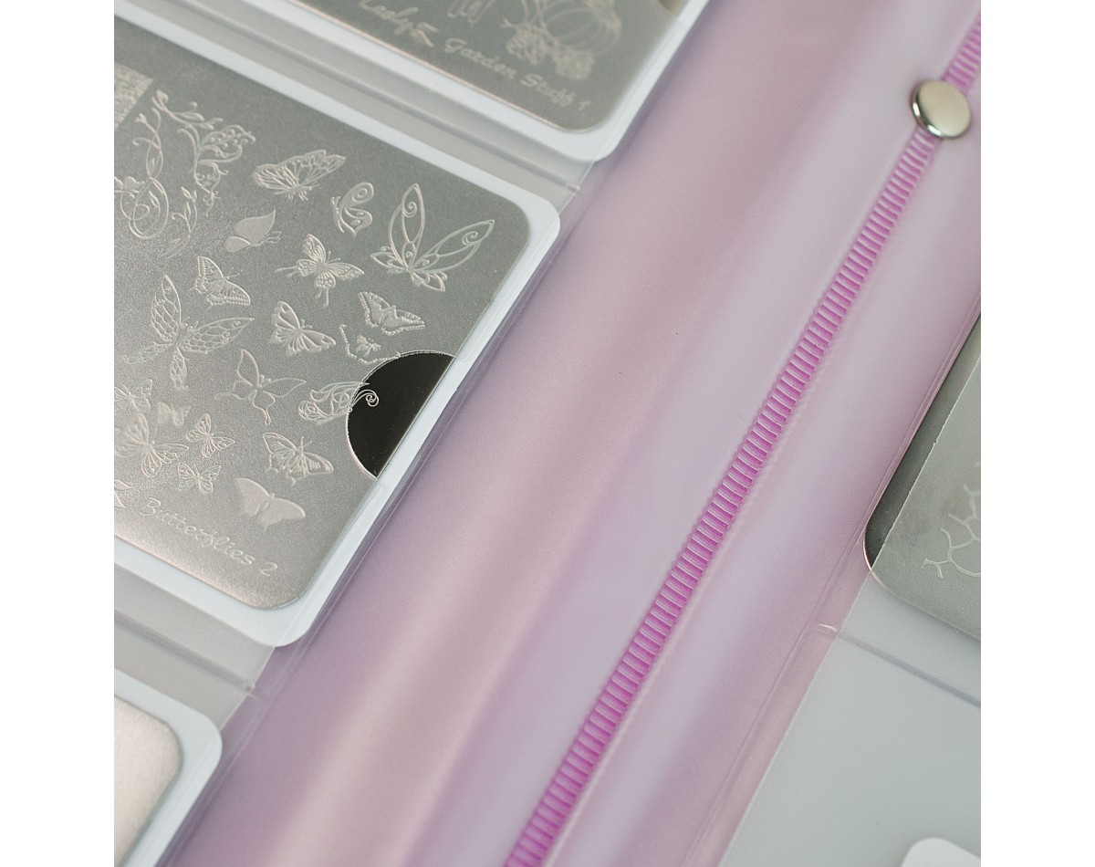Организует рабочее пространство стемпингомана и упорядочит коллекцию. Используется для демонстрации клиенту имеющихся в ассортименте пластин, кейс для хранения заполняется ластинами по различным тематическим направлениям: пластины с цветами, пластины граффити, пластины с животным принтом и другие. Можно собрать пластины по сезонным тематикам: летние пластины для стемпинга, осенние пластины для стемпинга, зимние пластины для стемпинга и весенние плитки для стемпинга.