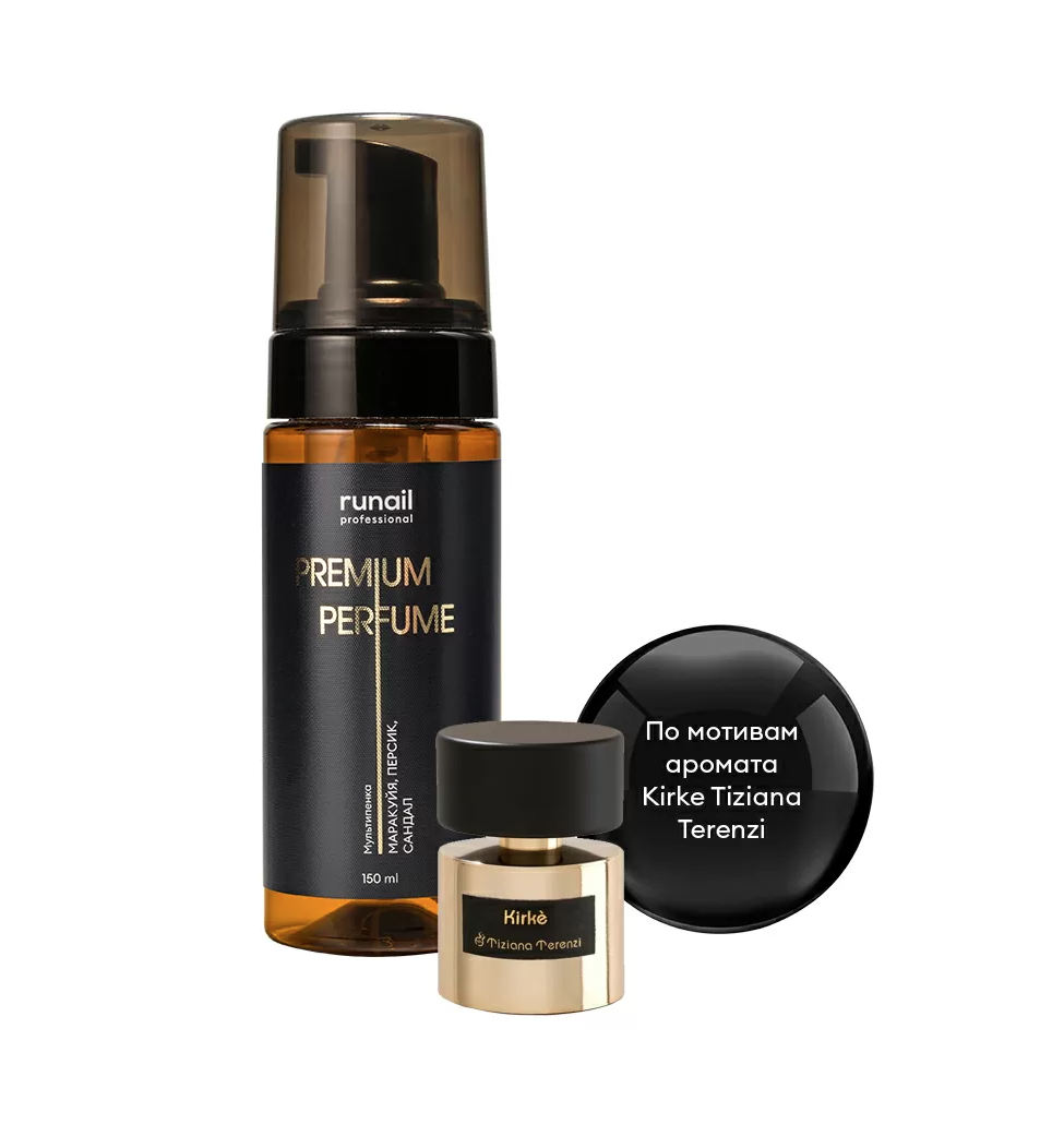 RuNail Очищающая мульти-пенка для маникюра и педикюра PREMIUM PERFUME (аромат: маракуйя, персик, сандал) - Многофункциональная пена предназначена для бережного и эффективного очищения кожи рук и стоп.
